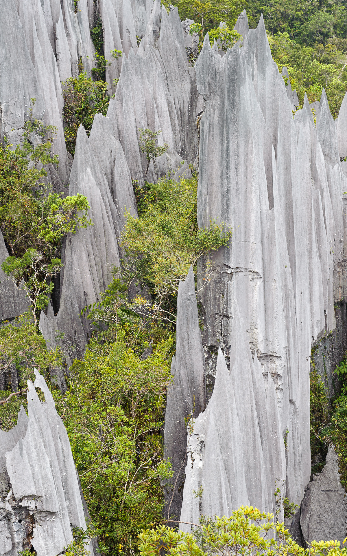 One morning we jump into some sort of canoe headed towards Mulu National park. Early enough we realise that the river does not have as much water as expected and many times we have to jump out the canoes and push till we find deeper water. The journey is quite arduos and what should have been a 3 hour boat ride ends up taking more than 7. As a result we arrive to the begin of our hike shortly before sunset. There’re 11 Km of jungle between us and our overnight camp. The prospect of having to cross the thicket in the dark, gives renewed energy to our legs and we start to hike vigorously through the wild terrain, while the vegetation starts to cover itself with scary shadows and animal noises. Inevitably it gets dark before we reach the camp. So we adjust our flash lights around our foreheads and continue walking through the darkness like there’s no tomorrow. Indescribable feeling of relieve when we finally reach the camp and are greeted by the park rangers. Who doesn’t really make it that night are the porters that we had hired to carry our big backpacks, so we have nothing with us except our sweaty clothes and our day bags. No sleeping bags, no soap, no towels. The rangers lend us some dusty blankets and advise to go to sleep and not to worry about the porters. They reckon they had probably stop walking with the fall of the darkness and that they will probably show up the morning after. Spot on.