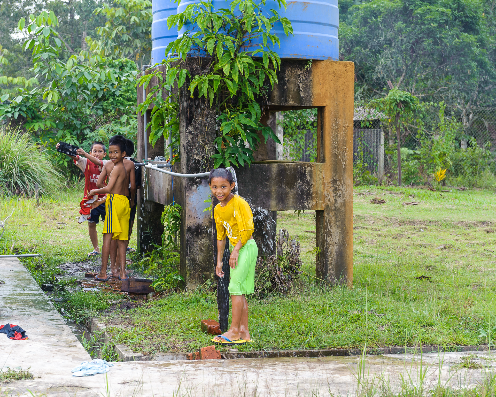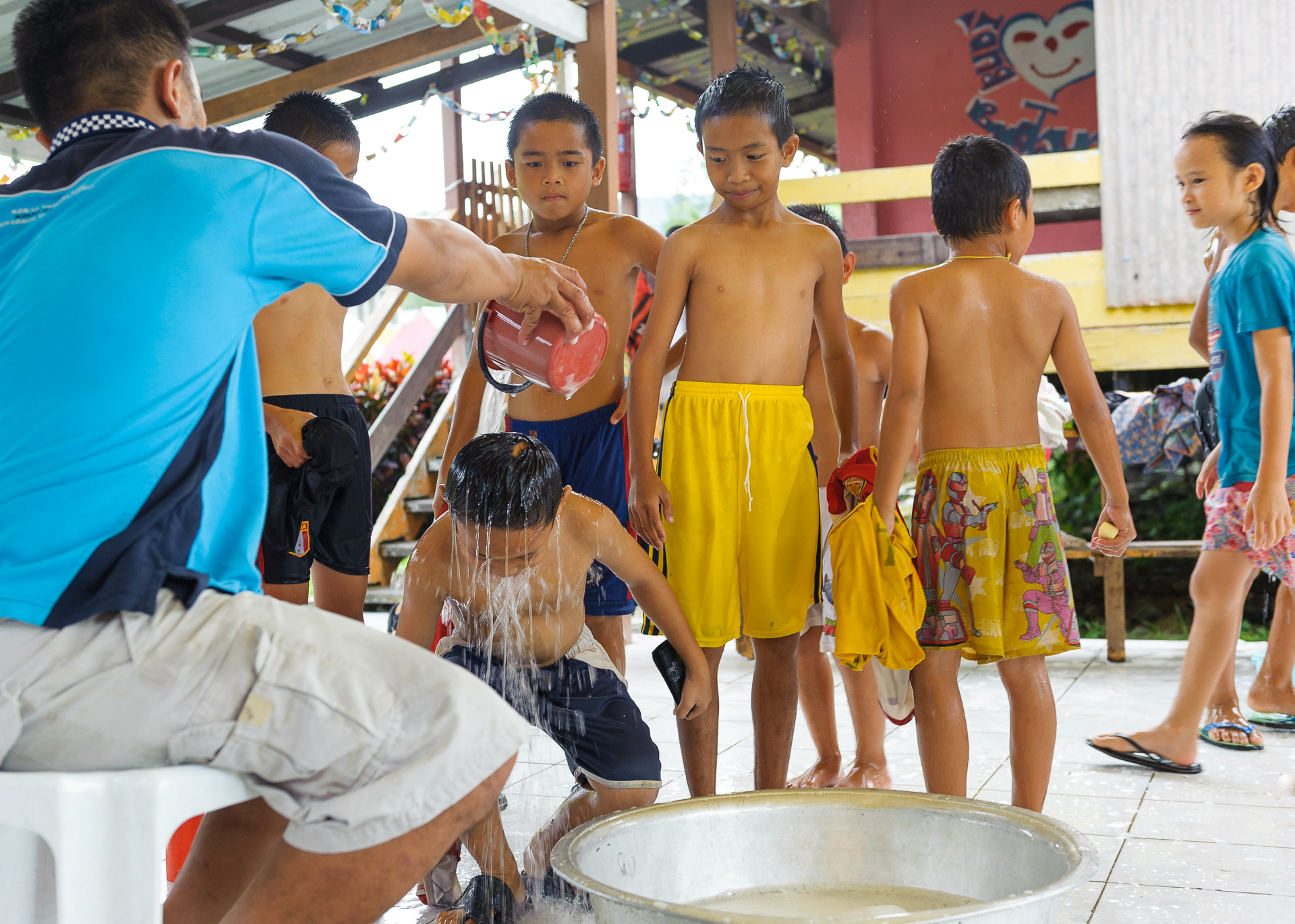 It was also precious to see how the locals live their everyday lives in some remote corners of the jungle. How the children get their bath at the end of their school day, how the generations live together on their long houses. We spend some time with them in one of these long houses, they explain to us that they are built on top of wooden poles to avoid flooding in the rainy season. It’s a nice stay, eating local food, playing with the children and listening to their stories and learning about their traditions, when the night comes.