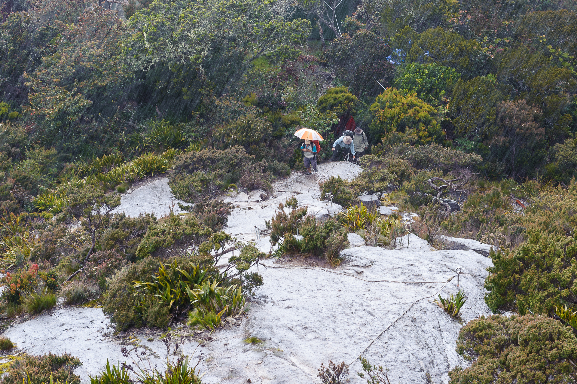 Our last stop in Borneo is in Kota Kinabalu, the town at the feet of Mount Kinabalu, that with 4095 m of altitude, it’s the highest of the island. We have all best intentions to climb it, and we start with energy in the morning. By the time we make it to the refugee at 3300 m, it’s pouring down and we are soaking wet. It’s really hard to get our body heat back, so we just eat something, remove our clothes, wrap ourselves into a couple of sleeping bags and try to get some rest, since we want to attack the summit before sunrise the morning after. But this unfortunately doesn’t happen. The rain continues and the rangers strongly advise us against venturing uphill, so we take it easy during breakfast and head down when the weather clears up a bit.